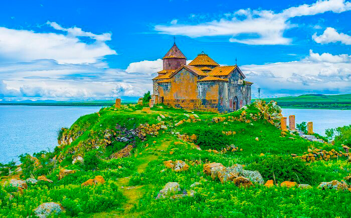 Hayravank Monastery, dating from the 9th–12th centuries, is situated on the northeastern edge of Hayravank village, along the picturesque shores of Lake Sevan in the Gegharkunik district. The complex features a church with a western entrance and an octagonal vault constructed from black and red inclined stones, showcasing the architectural ingenuity of medieval Armenian builders. Surrounding the church, archaeologists have discovered several dwellings, highlighting the monastery’s historical role as a community center. Excavations at the site have revealed a rich collection of artifacts. The oldest item is a black polished vessel from the Early Bronze Age, while many finds belong to the Iron Age, including colorfully decorated iron objects, gold and stone tools, weapons, clay idols, vessels, and fireplaces. These treasures illustrate the long and layered history of human activity in the area, making Hayravank not only a religious center but also an important archaeological site.
